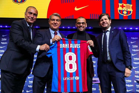 Alves, que se presentó descalzo en el Camp Nou, añadió que "algunas cosas pueden cambiar, ahora estoy un poco más guapo, pero hay otras cosas que no pueden cambiar, como la esencia de cada uno, es el momento de poner el Barça allí arriba".