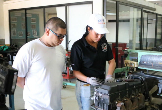 Bajar una transmisión, hacer el cambio de aceites o frenos de un vehículo ya no es una actividad exclusiva para los hombres. Lo anterior lo reafirman las participantes Shirley Vigil y Katherine Alvaez del programa de Mecánica Automotriz que se dicta en el Centro Inadeh de Tocumen.