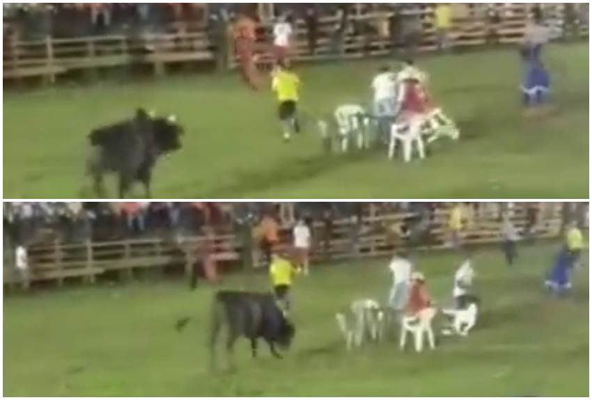 Un video que ha circulado en redes sociales muestra claramente como el panameño busca ganarse un par de dólares de la forma que sea incluso a costa de su propia vida, y es que en una barrera de toros en el distrito de Bugaba en la provincia de Chiriquí, un grupo de personas apuestan quién permanece sentado más tiempo en unas sillas mientras el animal se va contra ellos.
