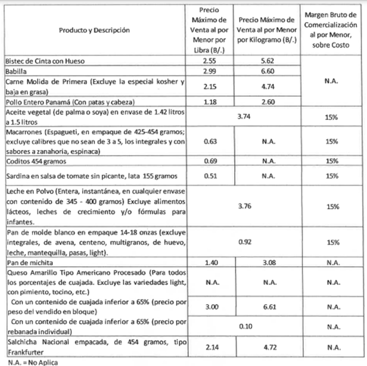 El control de precio sobre algunos productos de la canasta básica ha sido extendido por seis meses más, según consta en el Decreto Ejecutivo N.º 42 del 30 de diciembre, que prorroga la vigencia del Decreto Ejecutivo N.º 165 del 1 de julio del 2014.