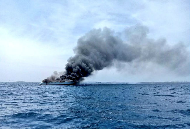 Llamas consumen un yate en el Archipiélago de Las Perlas