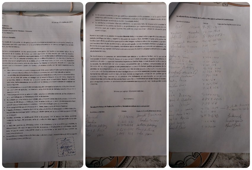 'día a día' tuvo acceso al expediente donde los padres de familia informaron al Ministerio de Educación las cosas que estaban sucediendo con este docente en la Escuela El Cobrizo. La directora regional de Educación en Veraguas, Milka Barsallo está anuente de esta situación.
