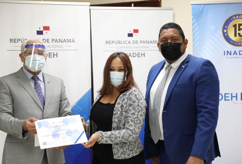 "Inadeh se convierte en la primera institución que emite certificados digitales para los participantes que reciben capacitación virtual en todo el país. Esto es nuevo logro en el fortalecimiento institucional, expresó Véliz Arosemena.
