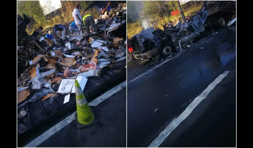 Un vehículo articulado que transportaba carne procesada hacia el interior del país, se incendió la madrugada de este miércoles en la vía Interamericana a la altura de Corona en el distrito de San Carlos en la provincia de Panamá Oeste.