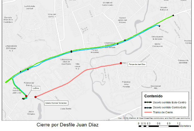 Los cambios se efectuarán en horario de 9:30 a.m. a 7:30 p.m. por el desfile que se llevará a cabo desde el Estadio Rommel Fernández.