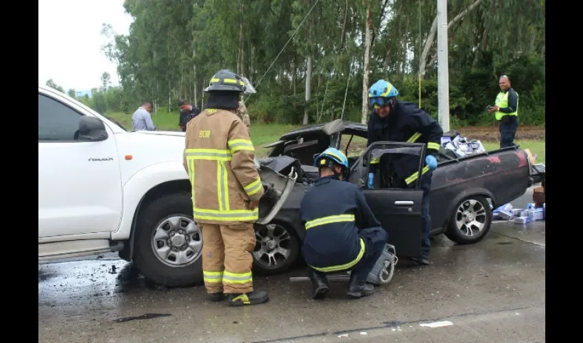 Detallaron que todo se trató de una colisión frontal entre 2 vehículos tipo pick-up en Vía Panamericana frente a la entrada del Aeropuerto de Río Hato en Antón.
