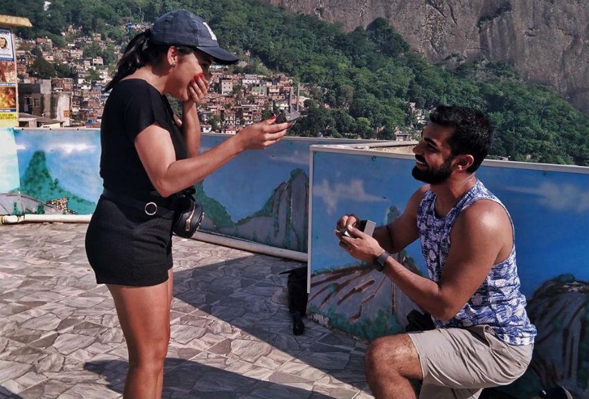 La pareja, que tiene aproximadamente once meses de relación está vacacionando en Brasil, escenario que el novio aprovechó para pedirle la mano a su amada, quien no vaciño en decirle sí.