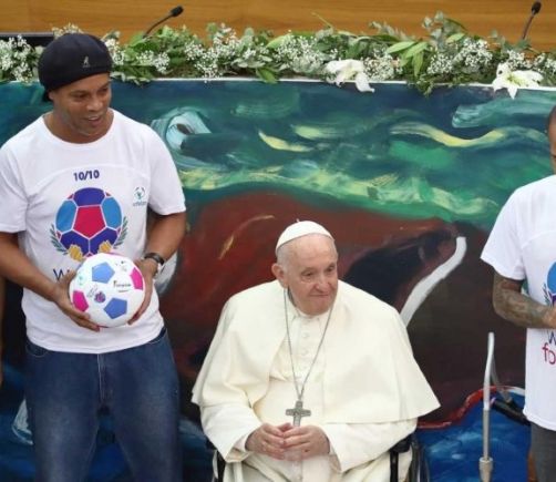 Ronaldinho, Alves y Maxi Rodríguez presentan con el papa Francisco el 'Partido por la paz'