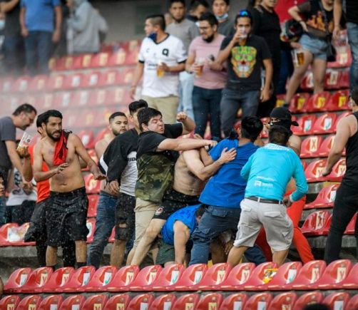 Suspenden a cinco funcionarios tras batalla campal de aficionados en estadio de Querétaro