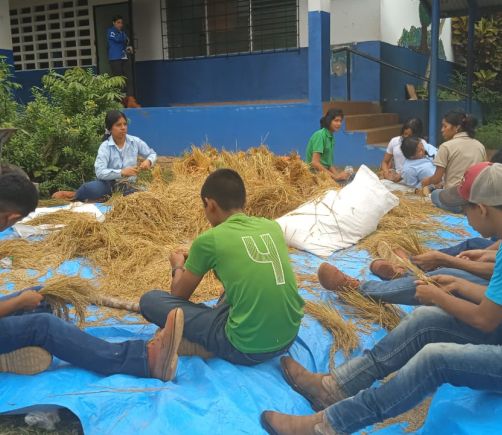 Alumnos cosechan arroz en el IPT de Capira