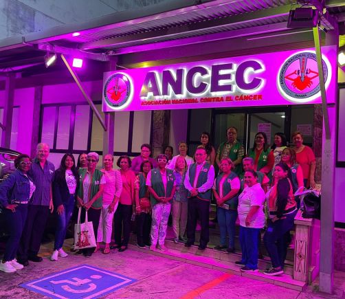 ANCEC ilumina su sede en apoyo a la campaña de prevención del cáncer de mama y próstata