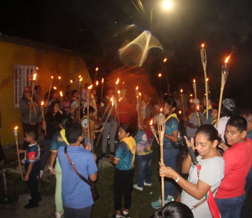 Niño y jóvenes del Movimiento Adventista realizan caminata de antorchas conmemorando el Mes de la Biblia