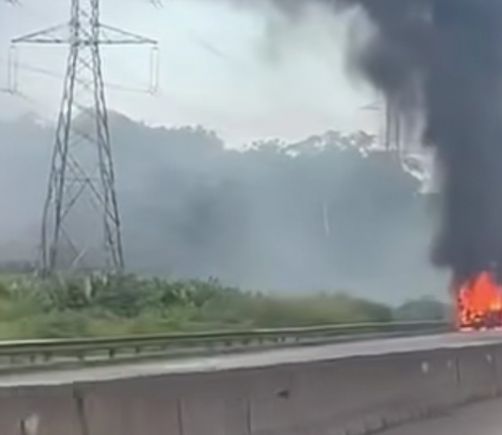 Bus de la Policía Nacional se incendia en el Corredor Norte