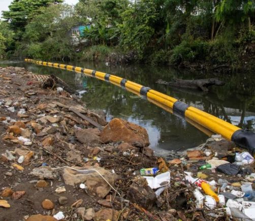 Inician instalación de barrera flotante en el río Río Abajo para frenar desechos