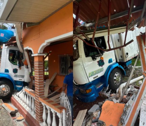 Camión choca contra casa y destroza columnas, techo y una cerca de pilotes