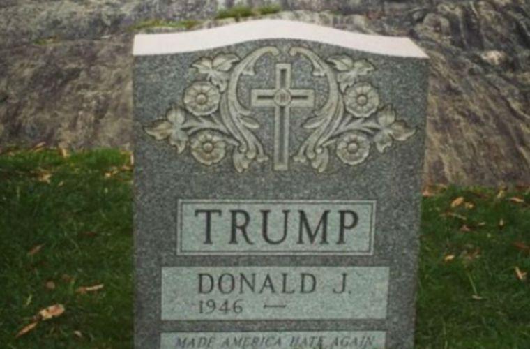 También incluía un mensaje, a modo de epitafio, que decía "Hagamos que EE.UU. odie de nuevo", en referencia al lema "Hagamos a EE.UU. grande de nuevo", que viene usando en su campaña. EFE