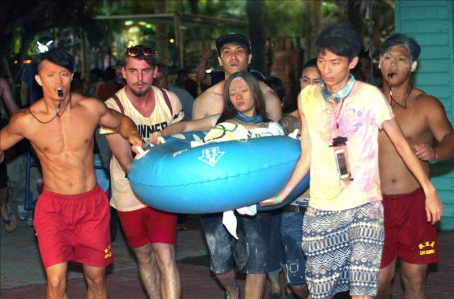 El número de heridos a causa del incendio ocurrido en un parque acuático en Taiwán mientras se celebraba una fiesta en la noche del sábado al domingo aumentó a 524, con 194 en estado grave y sin que se hayan registrado muertes, según informaron las autoridades sanitarias. La mayoría de las víctimas sufren quemaduras graves o han inhalado grandes cantidades de polvo tóxico, y dos mujeres de unos veinte años las padecen en más del 80 por ciento, indicó la agencia taiwanesa CNA. La explosión de una gran cantidad de un polvo inflamable podría ser la causa del siniestro, ocurrido en Nueva Taipei (norte de la isla), según informaron las autoridades, que están investigando lo ocurrido. Los heridos han sido repartidos entre 43 hospitales de la ciudad y de la vecina Taipei, mientras las autoridades han pedido a otras urbes como Keelung que estén preparadas también para recibir a los afectados. Un total de 183 pacientes se encuentran en cuidados intensivos y necesitan urgentemente injertos de piel, de acuerdo al buró de salud de Taiwán, citado por la agencia oficial Xinhua. Ese departamento añadió que ha emitido llamamientos urgentes a los órganos de donación y a la asociación de cirugía plástica para recibir donaciones de piel y otras necesidades quirúrgicas. El incendio comenzó a las 21:52 hora local (13.52 GMT) en el escenario del parque acuático, donde tuvo lugar la explosión del polvo inflamable, cuando se llegaba al final del festival "Color Play Asia", en la que había alrededor de 4.500 personas, apunta la agencia oficial china Xinhua. Algunos vídeos colgados en internet muestran a la gente pidiendo socorro cuando una ola de humo se convierte en llamas y envuelve el escenario, que enseguida queda totalmente cubierto de fuego. En una reunión de emergencia el domingo, el alcalde Nuevo Taipei, Eric Chu Li-luan, ordenó una moratoria al uso de polvo inflamable en su jurisdicción, medida que secundaron otras partes de la isla. Entre los heridos hay tres ciudadanos de la China continental, y todavía se desconoce si también hay extranjeros. Chu Li-luan, también presidente del gobernante Partido Kuomintang, se desplazó a la escena del incidente poco después de que se declarara el fuego y pidió que se acelerara la ayuda y tratamiento médico a las víctimas. Se trata del accidente con mayor número de heridos en la historia de Nuevo Taipei.