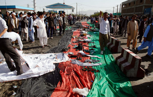 Un atentado suicida con bomba contra una manifestación pacífica de la minoría hazara en Kabul provocó al menos 80 muertos y 231 heridos, en el atentado más sangriento reivindicado por el Estado Islámico (EI) en Afganistán. Una marcha sin connotaciones religiosas, para protestar contra un plan energético del Gobierno que los hazaras denuncian que excluye a esta minoría, se vio sobresaltada por al menos una explosión, hacia las 2:30 de la tarde hora local. Los manifestantes se encontraban en la zona de Dehmazang de la capital afgana, después de que el fuerte cordón de seguridad les impidiera que alcanzasen el palacio presidencial. A la explosión siguieron las escenas de cadáveres en asfalto y heridos ensangrentados que pedían ayuda, mientras comenzaban a ser evacuados a hospitales en cualquier vehículo disponible. En un escenario de pánico, los equipos de ayuda, las fuerzas de seguridad y muchos de los manifestantes intentaban ayudar a un número creciente de heridos. "Los terroristas entraron entre los manifestantes y llevaron a acabo las explosiones", aseguró el presidente afgano, Ashraf Gani. El mandatario afirmó en un comunicado que entre los fallecidos y heridos se encuentran "miembros de las fuerzas de seguridad y defensa", pero sin aportar más detalles. El Ministerio del Interior afgano confirmó que aunque la mayoría de las víctimas son civiles, entre ellas también se encuentra "un número de fuerzas de seguridad" que vigilaban la marcha. "De acuerdo con la información inicial, tres suicidas con bombas cometieron el ataque. Uno detonó su chaleco explosivo, el segundo falló en su intento de explotarlo y el tercero fue abatido por las fuerzas de seguridad afganas", detalló en un comunicado. El EI, en su reivindicación del ataque a través de la agencia Amaq vinculada al grupo yihadista, asegura que fueron dos de sus combatientes los que "detonaron cinturones con explosivos en una concentración de chiíes en la zona de Dehmazang en Kabul". El ataque acabó con la vida de al menos 80 personas y dejó heridas a otras 231, de acuerdo con los últimos datos ofrecidos por Interior. Un saldo brutal que supera al ataque también reivindicado por el EI el año pasado en abril en la ciudad oriental afgana de Jalalabad, con 35 muertos y 125 heridos, en el que hasta era el más cruento de este grupo en suelo afgano. Además del presiente Gani y del jefe de Gobierno afgano, Abdulá Abdulá, organizaciones como Amnistía Internacional, la embajada de Estados Unidos en Kabul, que ha pedido a sus ciudadanos que extremen la seguridad, y la misión Apoyo Decidido de la OTAN en Afganistán han condenado esta nueva acción sangrienta contra civiles. Incluso un portavoz de los talibanes, Zabaiullah Mujahid, se expresó en contra de "cualquier ataque que cause división y discriminación entre la gente y la religión". Una condena a pesar de que los harazas son objeto desde hace años de ataques sectarios, algunos también ahora reivindicados por el EI, y de secuestros en grupo por parte de los talibanes. Los yihadistas tienen presencia en el país asiático al menos desde el año pasado, pero en marzo pasado las autoridades habían anunciado su derrota en su principal bastión en Afganistán, la provincia oriental de Nangarhar, aunque sin que hayan cesado los combates contra esta formación ni los ataques del EI. La comunidad hazara forma parte del 9 % de chiíes en Afganistán, un país predominante suní, y el ataque de esta jornada en Kabul es uno de los más graves que sufre en los últimos años.