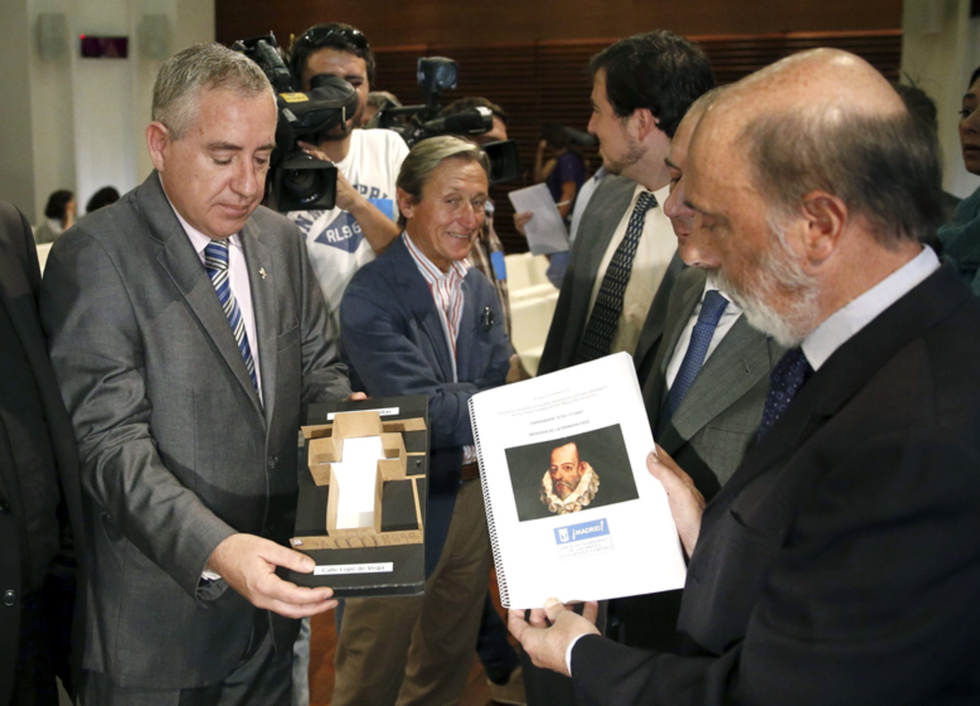 El estudio de la estructura y el subsuelo de la iglesia donde fue enterrado Miguel de Cervantes en 1616 se presentó ayer en una multitudinaria rueda de prensa celebrada en el Palacio de Cibeles y en la que el georradarista Luis Avial, el historiador Fernando de Prado y el forense Francisco Etxeberría reafirmaron la viabilidad de seguir con el proyecto.