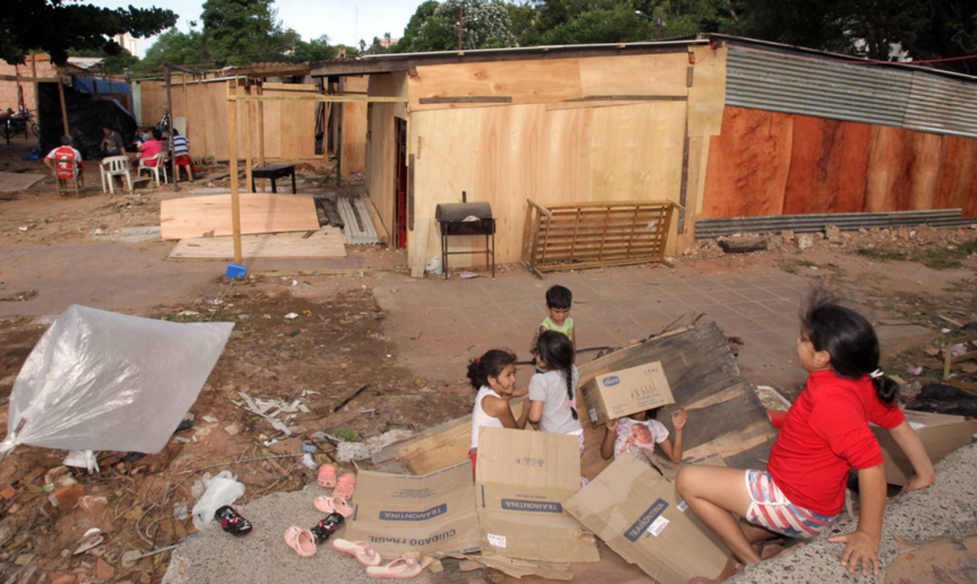 La subida del río Paraguay ha empujado la pobreza a las puertas del Congreso en Asunción, pues ha obligado a los residentes de uno de los barrios más míseros a subir la ladera y montar refugios con maderas y mantas ante lo que consideran la indiferencia de sus vecinos, los políticos.