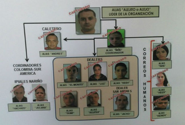 En otros once allanamientos realizados en el departamento insular de San Andrés, Valle del Cauca y Nariño, fueron arrestadas otras 13 personas que hacían parte de la banda.