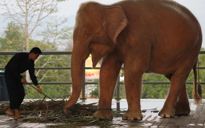 Es el noveno elefante blanco en cautividad en el país.