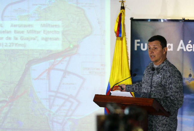Las autoridades militares colombianas avisaron de la proximidad a sus homólogos en Venezuela, que afirmaron "que estaban ejerciendo control del espacio aéreo" ante la presencia de una "posible aeronave ilegal que estaba volando sobre el área", explicó el general Bueno.