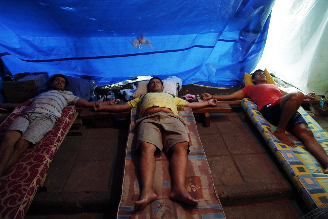 Tres conductores de autobuses de larga distancia se crucificaron en la periferia este de la capital paraguaya en protesta por haber sido despedidos sin causa aparente ni aviso previo.