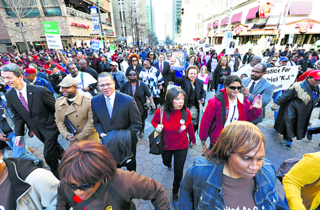 El servicio religioso incluyó oraciones, canciones, interpretación musical y oradores. Figura entre los muchos eventos con que se le rinde homenaje a King, que incluyó desfiles, marchas y proyectos de servicio comunitario.