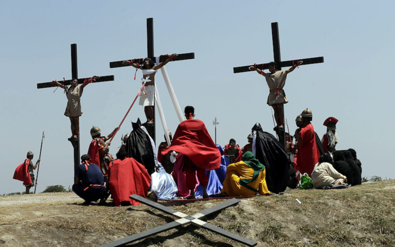 Gritando de dolor, varios devotos filipinos fueron clavados en cruces de madera para recrear la crucifixión de Jesús como parte de los rituales del Viernes Santo en la mayor nación católica de Asia.