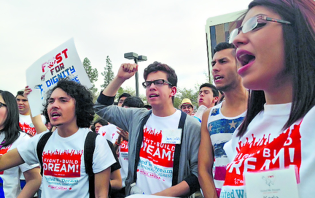Los manifestantes se reunieron en Arizona, un estado en el ojo del huracán del debate migratorio, con motivo del congreso de United We Dream, organización defensora de los dreamers, jóvenes que llegaron a Estados Unidos sin documentos legales.