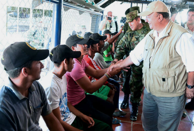 El Gobierno colombiano informó hoy que 15 personas, tres de ellas menores de edad, que habían sido secuestradas por la guerrilla Ejército de Liberación Nacional (ELN) fueron rescatadas hoy en una operación militar. "Rescatados pescadores que tenía retenido el ELN por supuesto castigo. Felicitaciones Ejército de Colombia, ahora a perseguir responsables", escribió el presidente Juan Manuel Santos en su cuenta de Twitter. Aunque inicialmente el comandante del Batallón de Selva número 48, teniente coronel Jaime Guio Ochoa, informó que habían sido secuestradas 17 personas, este domingo el ministro de Defensa, Luis Carlos Villegas, precisó que fueron 15 los plagiados y que el hecho ocurrió el sábado, cuando se dirigían a pescar en el municipio de Morales, en el departamento de Bolívar (norte). "Ayer a la 1 de la tarde se presentó por el ELN un secuestro de 15 compatriotas, 3 de ellos menores", indicó a medios el ministro. Posteriormente, los secuestrados fueron llevados a la vereda Campo Café, a dos horas y media de la localidad de Morales, donde fueron localizados por las autoridades gracias a las labores de inteligencia. En la madrugada de este sábado, 200 miembros de las fuerzas especiales del Ejército lanzaron un operativo aéreo y lograron rescatar a los secuestrados, que estaban custodiados por doce guerrilleros del ELN. Tras ser liberados, fueron trasladados a una base militar en la localidad de Aguachica, en el departamento del Cesar (norte), donde las autoridades comprobaron que "están en general bien de salud", destacó Villegas. El ministro explicó que el operativo continúa en persecución de los responsables del secuestro, que huyeron cuando se acercaron los militares. Morales y sus alrededores conforman una zona de fuerte dominio histórico del ELN, segunda guerrilla del país y que se encuentra desde enero de 2014 en diálogos "exploratorios" con el Gobierno con el fin de iniciar un proceso de paz similar al que el Ejecutivo desarrolla con las Fuerzas Armadas Revolucionarias de Colombia (FARC) desde hace más de tres años. El área es muy pantanosa y rica en minerales, por lo que han proliferado los yacimientos ilegales para extraerlos.En noviembre pasado, el ELN secuestró en esa zona a cuatro personas que trabajaban para una empresa contratista de la Gobernación de Bolívar.