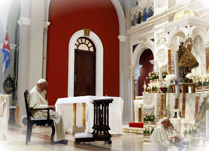 El papa Francisco ora ante la patrona de Cuba y le pide que reúna a su pueblo