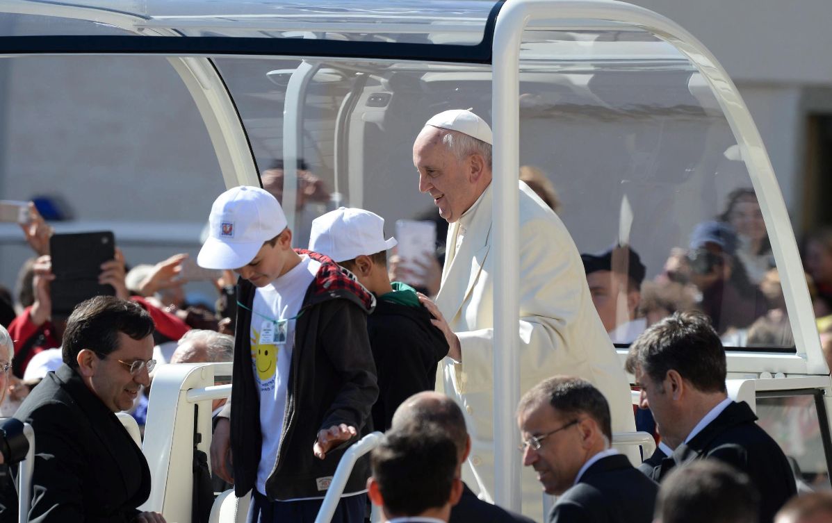 El papa invita a dos niños al papamóvil