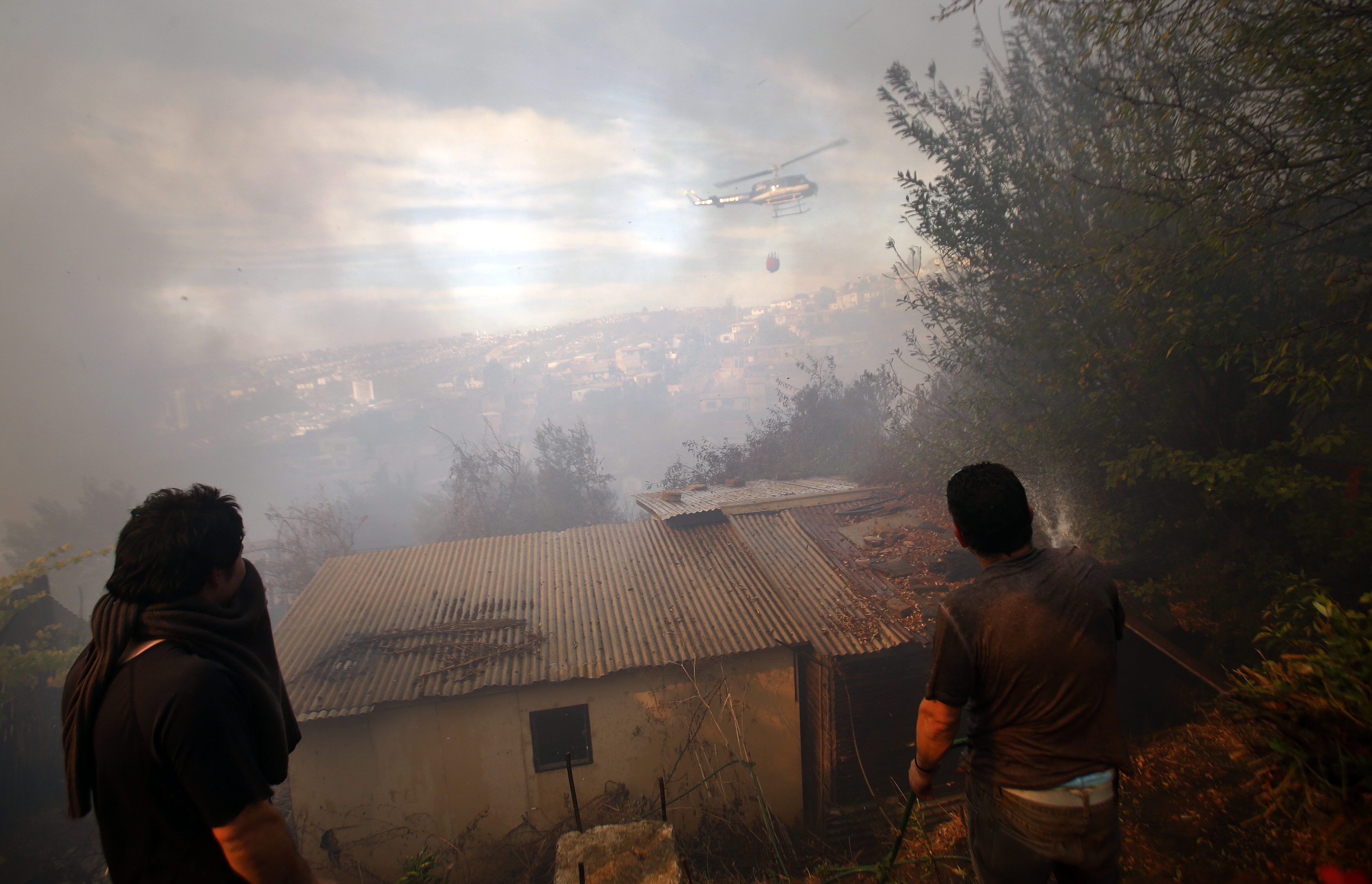 Redacción/Santiago/Valparaíso Chile EFELas autoridades chilenas ordenaron hoy el desalojo de las viviendas del cerro Ramaditas, en la parte alta de Valparaíso, donde se ha reactivado el incendio que desde ayer ha arrasado 800 hectáreas, provocado 11 muertos y destruido 1.200 casas, además de 10.000 evacuados.Los 1.500 bomberos y brigadistas que integran los equipos de emergencia luchan contra reloj para dominar los nuevos focos de incendio que se han avivado con el viento y mantener el resto bajo control, antes de que caiga la noche y deje de operar la veintena de aeronaves que combate las llamas, entre helicópteros e hidroaviones."Hay algunos lugares donde ha rebrotado y se está trabajando", declaró la presidenta, Michelle Bachelet, durante un recorrido por algunos de los cerros afectados, en tanto que la Armada atribuyó la situación al viento y las adversas condiciones meteorológicas.El Centro Meteorológico de la Gobernación Marítima de Valparaíso, ciudad portuaria situada a 120 kilómetros al oeste de Santiago, indicó que la previsión es que el viento, que actualmente alcanza los 18 kilómetros por hora, vaya amainando, especialmente a partir de la medianoche (03.00 GMT del lunes).El combate al fuego se concentra en estos momentos en el cerro Ramaditas, una zona boscosa muy próxima a un sector habitado, donde se abrió un frente de fuego de 4,2 kilómetros en cuya extinción trabajan siete brigadas.El director ejecutivo de la Corporación Nacional Forestal (Conaf), Aaron Cavieres, informó a CNN Chile que hasta el momento ningún brigadista ha resultado herido durante las labores de extinción de este devastador incendio, que comenzó la tarde del sábado en un área forestal rápidamente se propagó a cinco cerros habitados.En línea con lo expresado por otras autoridades, el responsable de la Conaf señaló que éste es el peor incendio de la historia de Chile en el que se han visto afectados núcleos de población, y.Durante el día se abrieron dos nuevos frentes, uno que quedó controlado por la mañana y otro, en el cerro Ramaditas, donde se han concentrado tanto los equipos terrestres, apoyados por militares y personal de la Oficina Nacional de Emergencia, como los aviones y helicópteros.El responsable de la Conaf pidió a la población que estos días no encienda fuego bajo ningún concepto, porque además de la catástrofe de Valparaíso, los brigadistas están combatiendo otros dos incendios en la zona, uno en San Antonio y otro en Pichilemu "que obligan a desviar recursos y también hay que atender".La Conaf espera reforzar sus equipos con la llegada mañana lunes de personal procedente de la provincia de Arauco y el martes desde Concepción, a 515 kilómetros al sur de Santiago.En tanto, la empresa de agua potable Esval anunció este domingo un corte en el suministro en Valparaíso y la vecina ciudad de Viña del Mar, con objeto de atender la demanda provocada por los incendios."Somos una ciudad demasiado vulnerable. Hemos sido constructores y arquitectos de nuestros propios peligros", declaró este domingo al Canal 24 Horas el alcalde de Valparaíso, Jorge Castro, quien se declaró "impotente" ante la emergencia que desde el sábado ha calcinado cinco cerros poblados de la ciudad.El estado de excepción decretado ayer por la presidenta Bachelet, que pone bajo mando de las fuerzas armadas el mantenimiento del orden público y la seguridad en la zona de catástrofe, se mantendrá en tanto continúe la situación de emergencia, detallaron las autoridades.Al tiempo que comienza a distribuirse la ayuda para los afectados y los equipos municipales realizan el catastro de daños, los vecinos de Valparaíso han empezado a recoger los escombros de las viviendas destruidas, muchas de ellas aún en ascuas.Las autoridades han suspendido las clases para mañana en toda la ciudad, situada a 120 kilómetros al oeste de Santiago y donde habitan unas 250.000 personas.