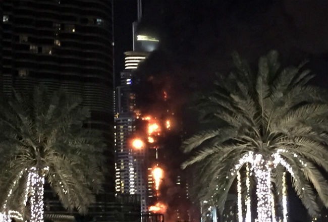El fuego se propagó desde el hotel The Address, situado en el edificio, poco antes del comienzo de las celebraciones de fin de año con fuegos artificiales en la torre Al Jalifa, donde se congregó una gran cantidad de personas.
