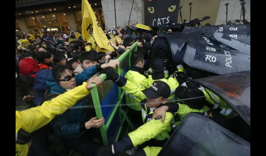 Varios miles de personas se manifestaron en Seúl contra el Gobierno surcoreano por su gestión del naufragio del ferri Sewol, en una protesta que ha provocó enfrentamientos con la policía y causó una decena de heridos.