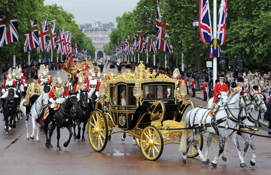 La carroza que la reina Isabel II de Inglaterra utilizó por primera vez para desplazarse al Parlamento de Westminster está fabricada con piezas que aglutinan siglos de la historia británica.