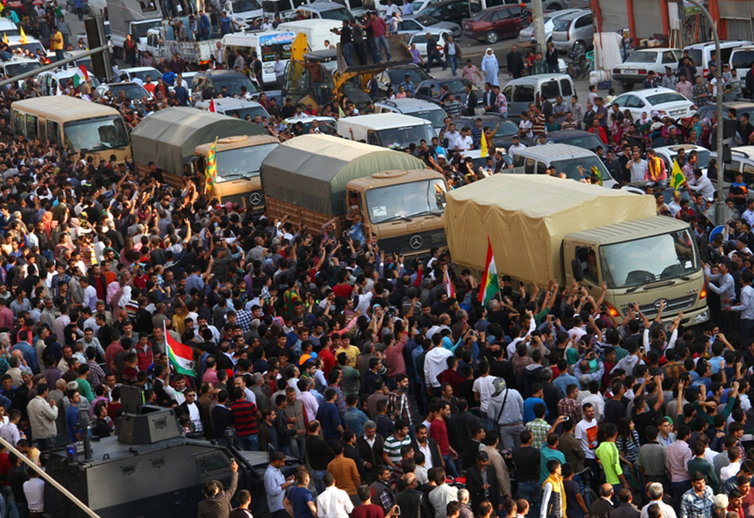 Una primera tanda de unos cincuenta combatientes del opositor Ejército Libre Sirio (ELS) accedió a la localidad a través de Turquía, ya que Kobani está totalmente cercada por los radicales, excepto por el norte, donde limita con el territorio turco.