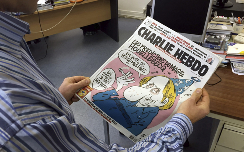 El último número del semanario satírico francés Charlie Hebdo, aparecido ayer y dedicado al polémico escritor Michel Houellebecq, contiene en sus páginas una caricatura firmada por el director de la publicación, Charb, que parece premonitoria.
