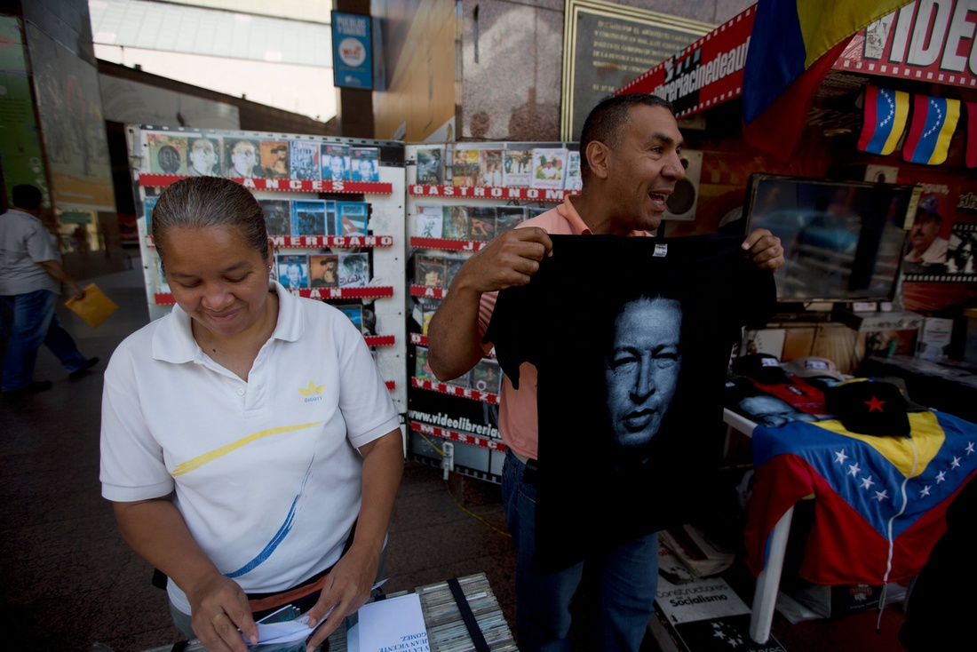 La tipografía imita la letra del zurdo político, cuya firma es ya parte habitual en camisetas, gorras, llaveros y cuanto artilugio publicitario se vende en Venezuela con la imagen de Chávez, donde la comercialización de artículos relacionados con el promotor del socialismo del siglo XXI es más que prolífica.
