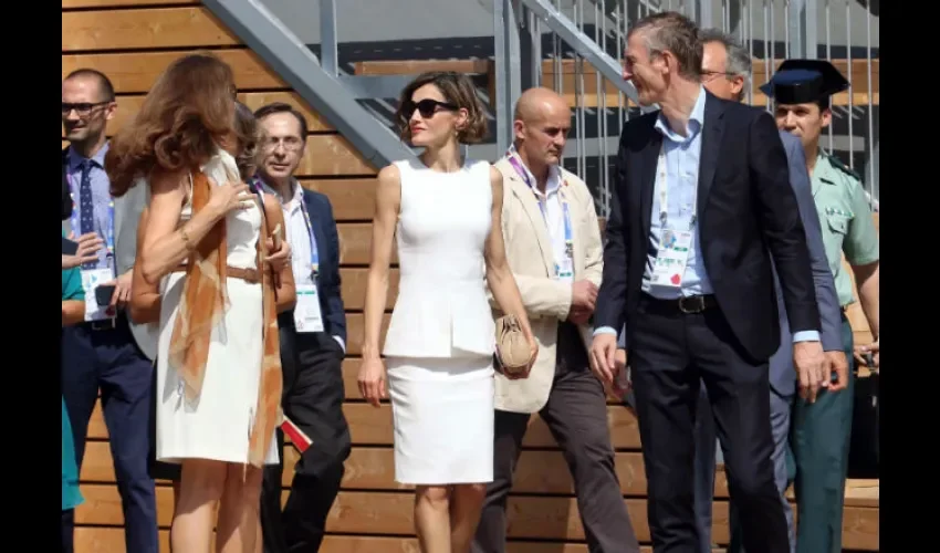 Vestida con un conjunto blanco de dos piezas entallado y acompañada por la ministra española de Agricultura, Isabel García Tejerina, atendió a las explicaciones de la comisaria, que presentó el pabellón como muestra de "lo mejor" de la gastronomía española.