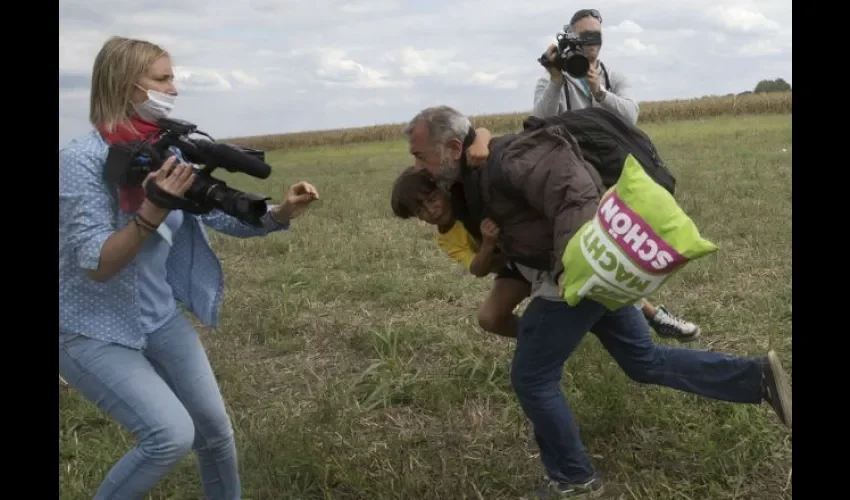 En otras imágenes se ve a la misma reportera pateando a varios refugiados, incluida una niña.