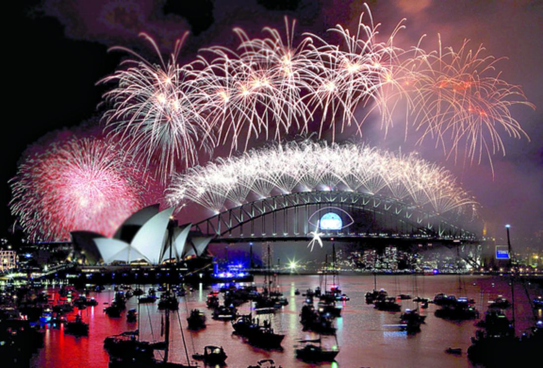 En Sídney, los fuegos artificiales se lanzaron desde cuatro veleros de la Ópera por primera vez en una década. Los juegos pirotécnicos que se vieron en la bahía de Sídney fueron doblemente mayores que los del año pasado.