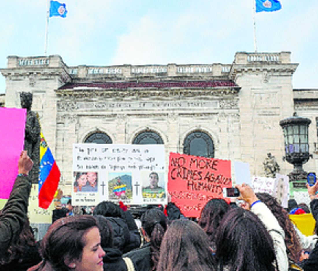 EtiquetasCentenares de venezolanos se unieron ayer alrededor de la sede de las Naciones Unidas en Nueva York para protestar, con la boca sellada con cinta, contra la que consideran censura del gobierno de Nicolás Maduro y la detención del líder opositor Leopoldo López.