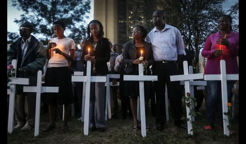 Unos jóvenes descargaron una montaña de cruces blancas de la parte de atrás de una camioneta y, allí mismo, improvisaron un memorial efímero en el que velas, banderas kenianas y un tablón con fotografías de los fallecidos daban un aire de solemnidad y pésame.