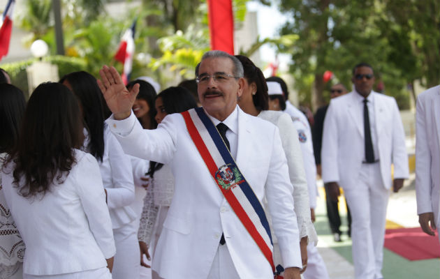 El presidente dominicano, Danilo Medina, anunció hoy una serie de acciones, como un plan integral de superación de la pobreza extrema y la creación de 400.000 empleos, con los que afrontará su segundo y último mandato. Medina juró hoy el cargo en una ceremonia en la Asamblea Nacional en presencia del rey Juan Carlos de España y los presidentes de Venezuela, Nicolás Maduro; Bolivia, Evo Morales; Ecuador, Rafael Correa; Honduras, Juan Orlando Hernández; Panamá, Juan Carlos Varela; Guatemala, Jimmy Morales, y Haití, Jocelerme Privert. A la toma de posesión del gobernante no acudieron los legisladores de la oposición, quienes alegan que en las pasadas elecciones de mayo, en las que Medina fue reelegido con más del 60 % de los votos, se cometieron supuestas irregularidades. En las afueras de la Asamblea Nacional, un grupo de extrabajadores de la industria azucarera protestó para exigir mejoras y pensiones.Respecto a las pensiones, Medina anunció que aprobará unas 50.000. Medina, quien juró su cargo junto a la vicepresidenta Margarita Cedeño, dijo que durante su gestión 900.000 personas salieron de la pobreza y que, adicionalmente a estas, al menos otros 830.000 dominicanos más saldrán de la pobreza en el próximo cuatrienio. Al mismo tiempo, el gobernante anunció el Plan Nacional de Seguridad Vial para la prevención de accidentes de tránsito, mediante la creación del Consejo Nacional de Seguridad Vial. Por otro lado, el jefe de Estado dio a conocer un sistema universal de documentación civil para toda la población para facilitar el acceso a la seguridad social y los diversos programas sociales. En otro orden, anunció que en los próximos cuatro años no se van a construir tantas aulas, pero sí vamos a poner toda nuestra atención en que estas aulas estén llenas de profesores motivados y bien formados y se realizarán significativos aumentos al salario de los docentes de un 60 por ciento de media. La educación ha sido uno de los principales logros de la pasada gestión de Medina, quien también se refirió hoy a la Justicia, cuestionada en los últimos meses por supuestas acciones incorrectas por parte de jueces. En ese sentido, el mandatario hizo un llamamiento de atención a la opinión pública, al Poder Judicial y al Congreso Nacional para que nos abramos a un diálogo sincero sobre nuestro modelo de proceso penal y evaluemos cómo se está aplicando en la práctica. Anunció nuevas medidas para combatir la inseguridad ciudadana, entre ellas la creación de una policía comunitaria o de proximidad y aumento de agentes en las zonas más vulnerables.Asimismo, informó que mejorará la red de videovigilancia y las capacidades a las unidades tácticas y de investigación y que incorporará el uso de drones. Tras asumir el cargo por otro periodo de cuatro años, Medina se trasladó al Palacio Nacional, donde tomó juramento a los titulares de los 22 ministerios, de los cuales 8 repiten en sus cargos y 5 intercambian carteras. La principal sorpresa la constituye el nombramiento del empresario Miguel Vargas, presidente del otrora mayoritario Partido Revolucionario Dominicano (PRD, socialdemócrata), quien decidió apoyar a Medina en las elecciones del pasado 15 de mayo tras la última división interna en la organización perredeísta. Paralelamente tomaron posesión de sus cargos 3.842 funcionarios municipales, 262 congresuales y los 20 diputados y sus suplentes al Parlamento Centroamericano (Parlacen).Durante la investidura de la presidenta de los diputados, Lucía Medina, hermana del gobernante del país, legisladores de la oposición levantaron carteles en los que se podía leer mensajes como: Nuevo pacto por la democracia, Altas cortes independientes o Código electoral. Vienen tiempos gloriosos para la República Dominicana. Tiempos de conquista, de orgullo nacional, de esperanzas que se alcanzan, de sueños que se hacen realidad. Tiempos de amplias sonrisas, de cabellos brillantes, de cabeza erguidas, concluyó Medina su discurso, que se prolongó por una hora y 22 minutos.