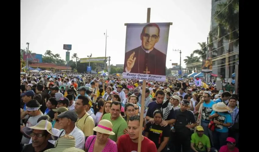 Los vítores dedicados a monseñor Romero y las pancartas que exhibieron fragmentos de sus homilías, muy críticas de los poderes de esa época en El Salvador, se pudieron ver lo largo de la multitudinaria celebración.