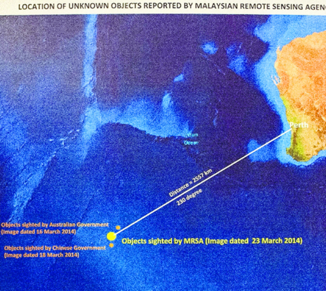 El Gobierno malasio difundió nuevas imágenes de satélite que muestran 122 objetos en la zona del sur del océano Índico donde se cree que se estrelló el vuelo MH 370 de Malaysia Airlines con 239 personas a bordo.