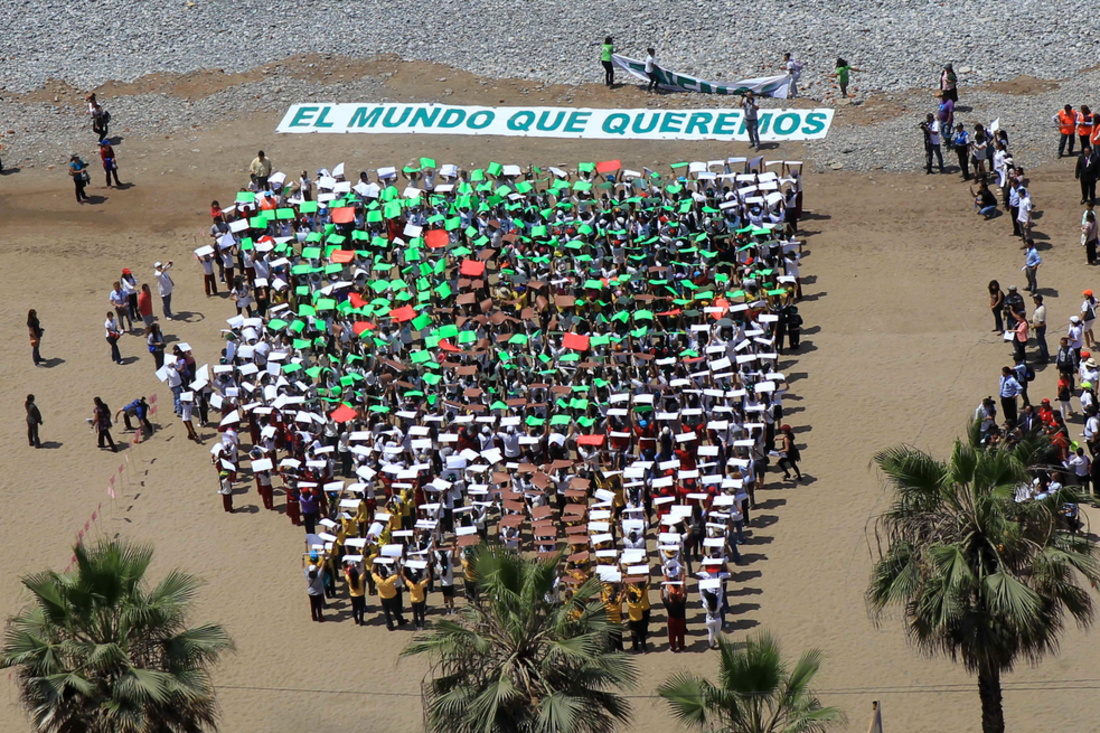 Cientos de niños peruanos se reunieron en la Costa Verde, en el litoral costero de Lima, para conformar un comando COP y manifestar su compromiso con el cuidado del medioambiente, en el marco de la Vigésima Cumbre de las Naciones Unidas sobre el cambio climático (COP20, por sus siglas en inglés).